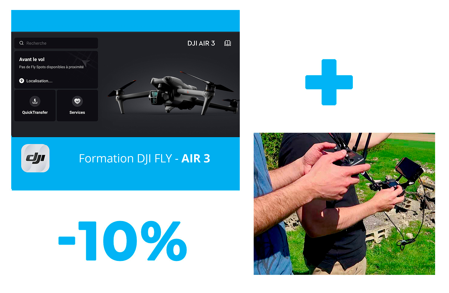 Bénéficiez d'un prix avantageux en achetant un pack formation pilotage + la formation DJI FLY dédiée à votre drone